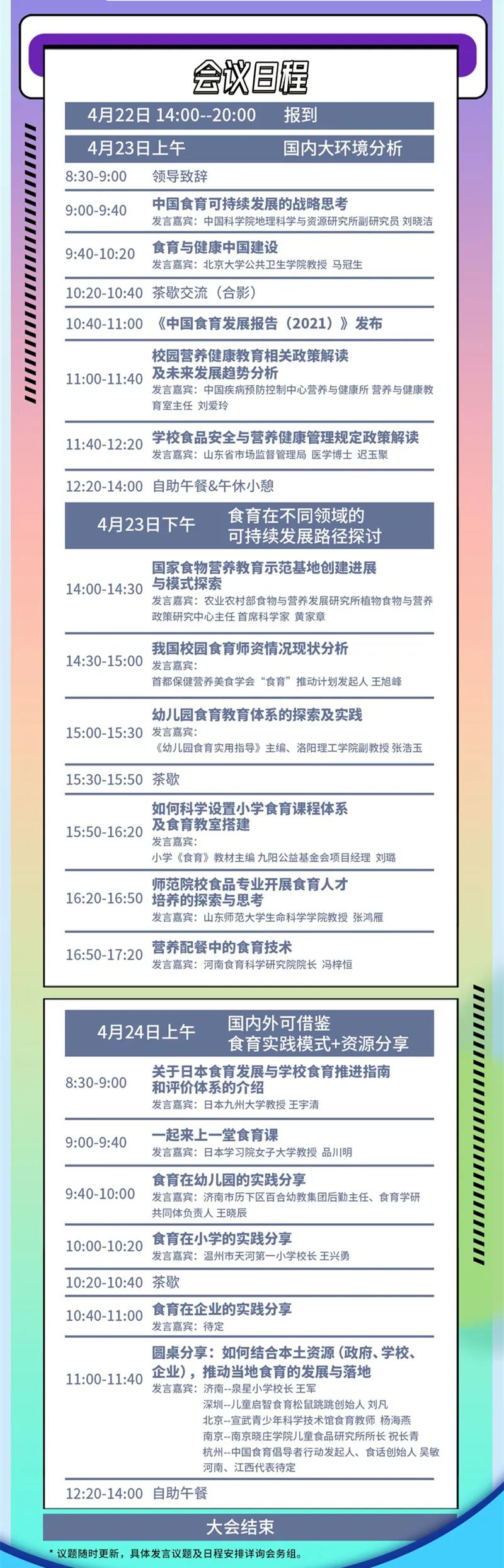 本次论坛将邀请长期从事食育理论研究的专家学者,及拥有丰富食育实践经验的团队和个人,与大家一起深入了解国内相关政策,探讨食育实践情况与开展模式,分享食育资源,搭建行业交流和学习平台,有效学习成熟食育开展经验,推动中国食育发展。