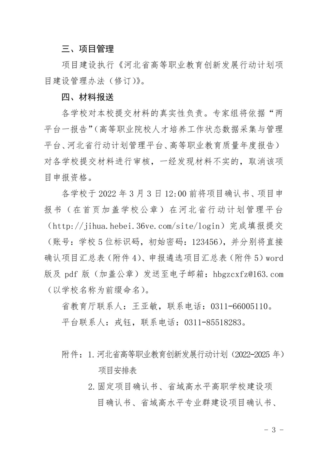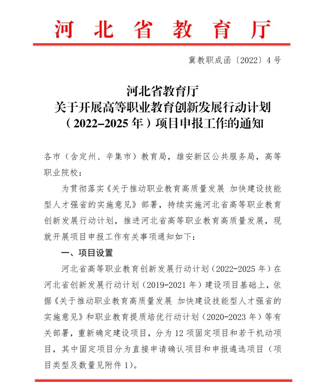 河北省教育厅 关于开展高等职业教育创新发展行动计划(2022-2025年)项目申报工作的通知