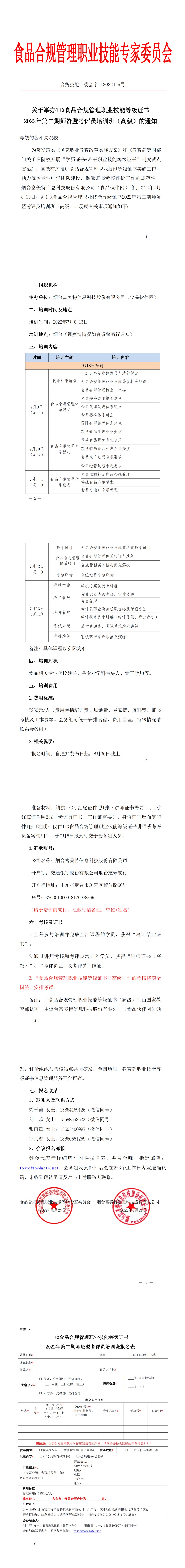 关于举办1+X食品合规管理职业技能等级证书2022年第二期师