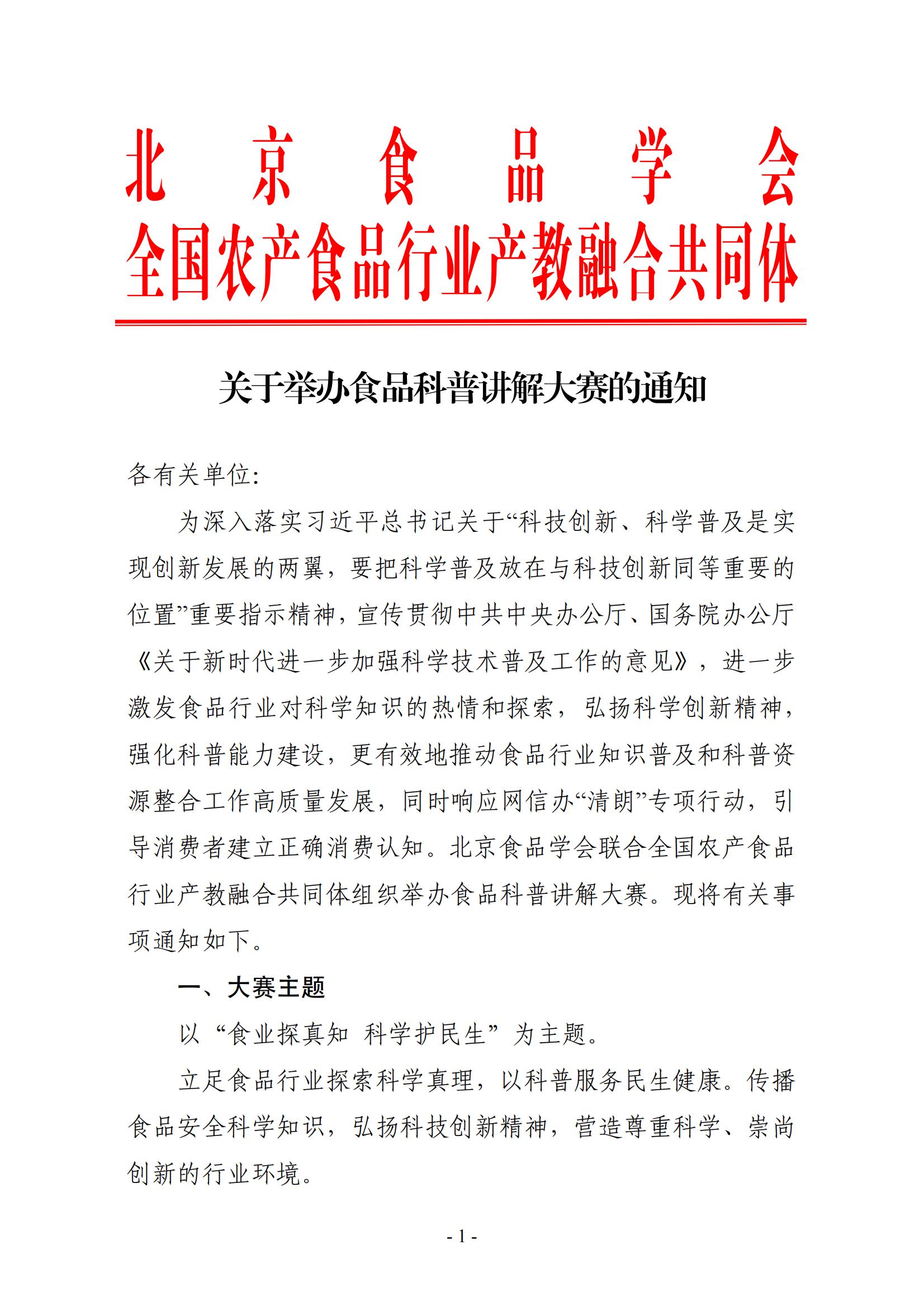关于举办食品科普讲解大赛的通知